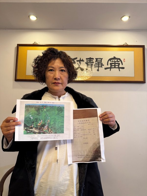 图:民营企业家张艳秋展示证据/ 朱瑞峰摄影