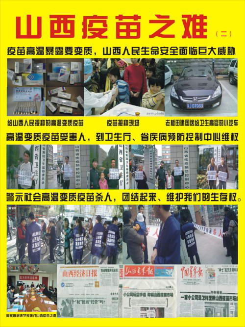 这些所谓受害人越来越不像话,竟然在我们中心拉起条幅(山西疾控高温变质疫苗杀人)闹事,性质发生了变化,矛盾已与我个人升级到与我们中心。希望同志们坚定立场,不要听信谣言,作好正面宣传,疫苗只有很小的量打不死人,动员他们去作异常反应鉴定。