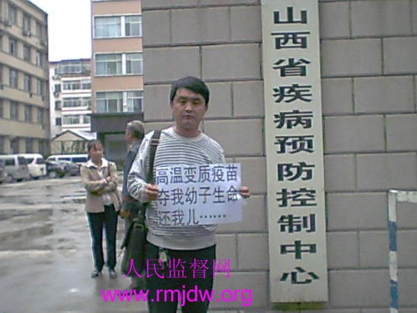 近来人们传说山西疫苗有问题,疫苗因高温曝光而变质,人们接种了会得病,我看了人民监督网上的文章,“山西厅级高官垄断黑心疫苗摧残祖国花朵”和“高温疫苗受害者高崇杰痛诉山西副厅级高官李树凯的恶行”找到了山西疫苗问题的举报人陈涛安。他说,乙肝疫苗收钱了就是二类疫苗,就是贴标签的疫苗,这些疫苗有高温曝露的问题,是质量异常疫苗,如接种变质疫苗孩子这么小哪里能受得了。致此我找到了孩子死亡的原因。就是接种了省疾病预防控制中心,在大楼楼道里给乙肝疫苗贴“山西疾控专用”标签的疫苗,这种疫苗常温长时间停放导致变质。
