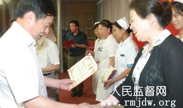 各位领导给先进党员发证书,“吴醉醉”院长拿着证书找不到人。