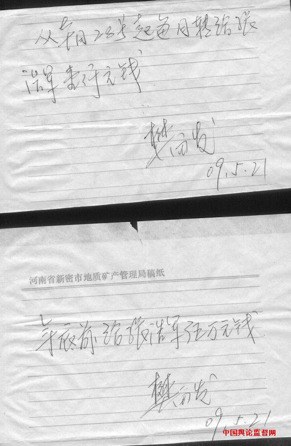 樊留发亲笔书写的承诺