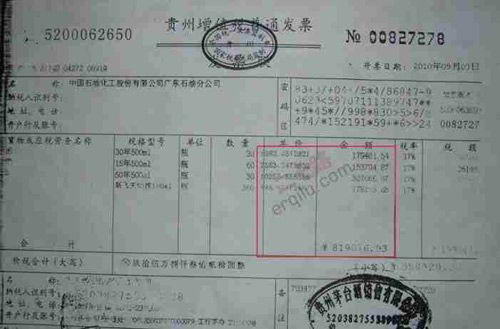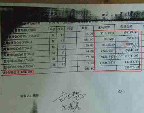 网上所公布的多张发票复印件显示,此次被曝光的企业是“中国石油化工股份有限公司广东石油分公司”,所进酒水多为“拉菲”等名贵洋酒及高价茅台酒。其中,仅一瓶拉菲1996(750ml)的无税进价就高达11846元。另一张贵州茅台酒销售有限公司所开的发票显示,中石化广东分公司一次性购买了近82万元的茅台酒。