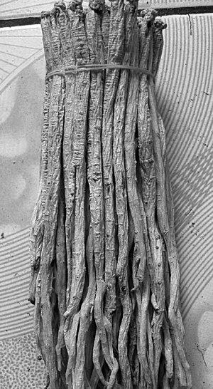 “桔梗也是感冒药方的常用药材,以前每公斤不过六七元钱,现在因为韩国做泡菜用,好的桔梗都出口了,剩下的现在的价格也到了每公斤八九十元。”樊庆龙说。