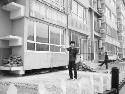 周阳站在自家窗前,脚下“惹祸”的水泥地面尚未完工。本报记者  王晨摄
