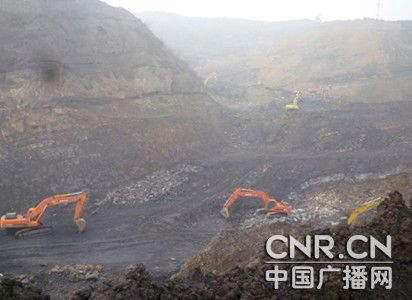 挖掘机不断地从“垃圾填埋场”的煤层挖出煤炭(陈振玺摄)