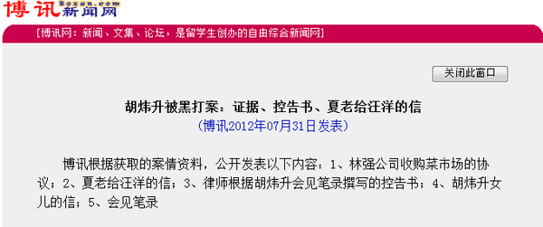 博讯网将广东的“三打”定性为“黑打”,并公布了老干部“夏老”给汪洋写“公开信”,从而达到“捞”胡炜升的目的。