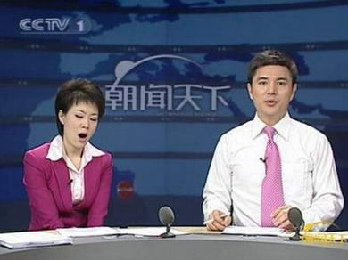 图:2008年4月17日,央视《朝闻天下》栏目主持人文静在节目中打哈欠