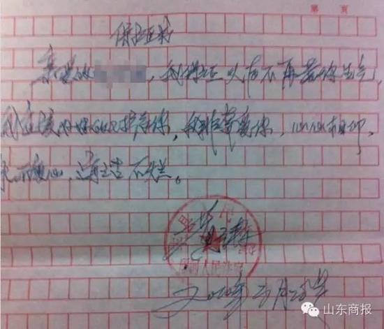 这份保证书,写于一张红色格子的稿纸上,落款处盖有“丰县人民法院顺河法庭”的公章。
