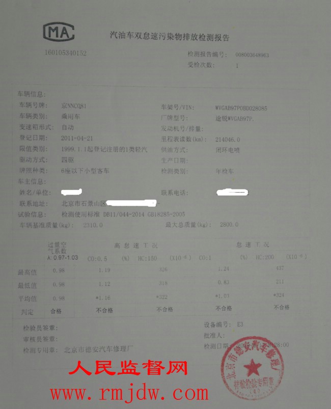 图:河南周口市原副市长刘占方时价130万元德国进口途锐座驾被检测排放四个不合格/北京车贩子刘先生提供