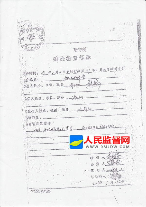 图:司法机关伪造的看守所健康检查笔录