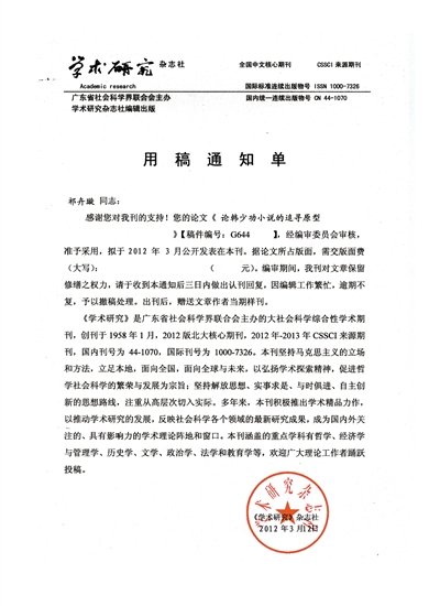 这封用稿通知单上称,“齐敏同志,感谢您对我刊的支持,您的论文经编审委员会审核,准予采用,拟于2012年3月公开发表在本刊。”
