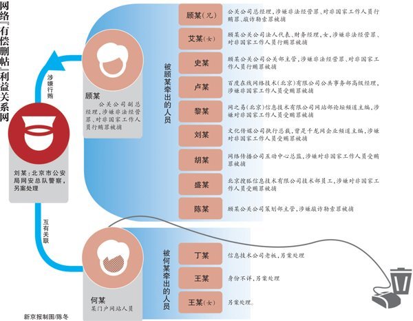 百度报案揭开有偿删帖黑幕;多位网站管理人员、传媒公司负责人、公安民警先后落网。