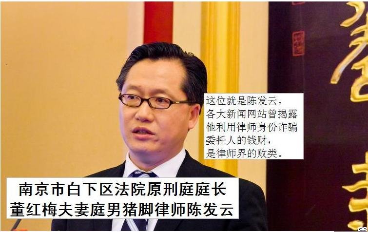 南京白下区法院董红梅夫妻庭真面目:在董红梅当刑庭庭长、陈发云当广电法律顾问的几年里,董红梅领导的刑事审判庭审理判决了南京广电集团十几起承包“贪污案”,以上案件均由陈发云出材料,董红梅指使下属判决。