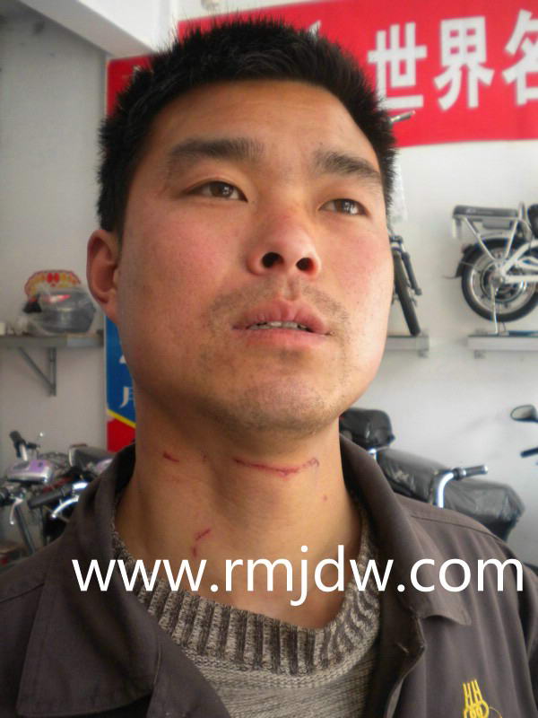 据靳照利的爱人李霞说,这位局长脱口说,你不就是个电动车吗?再嫌我说话难听,我还想打你呢,随后几个身穿制服的执法人员上前把靳照利拖到店内开始殴打。据靳照利说,执法人员先后三次对他殴打,因十余人不停地拳打脚踢,致使靳照利右眼肿胀,后脑勺疼痛难忍,脖子上留有被掐伤的血痕。