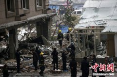 22日,重庆大渡口区法院食堂发生爆炸事故。图为事故现场。 爆炸现场周围拉起警戒线。 22日早上6时40分许,重庆大渡口区法院食堂发生爆炸,目前已致5人受伤,附近一些民宅玻璃被震
