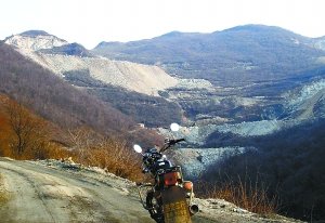摩托车对面的山谷便是赵家承包的矿山。本报记者 钱昊平 摄